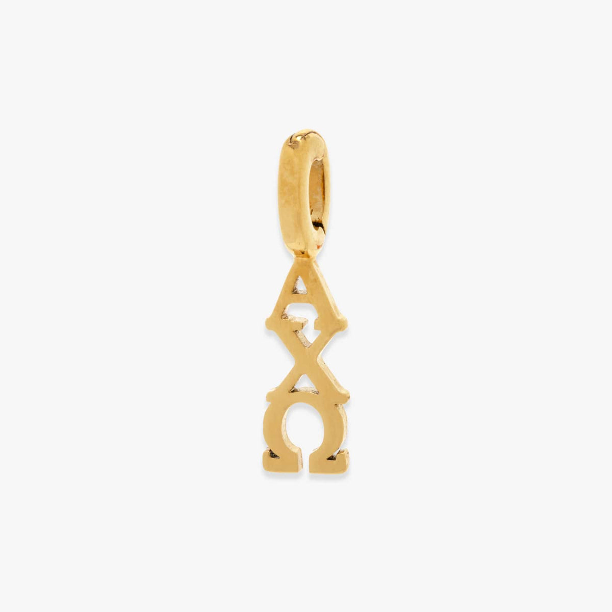 - Features bubble-style Greek letters with a stainless steel base and IP gold plating