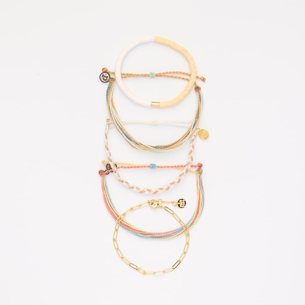 Salty hair, sandy toes, and sun-soaked vibes — the Beach Life Pack was made for your endless summer days. Warm tones mixed with ocean-inspired blues bring that laidback, barefoot energy wherever you go. Stack it up and wear the beach with you — no matter where you are.