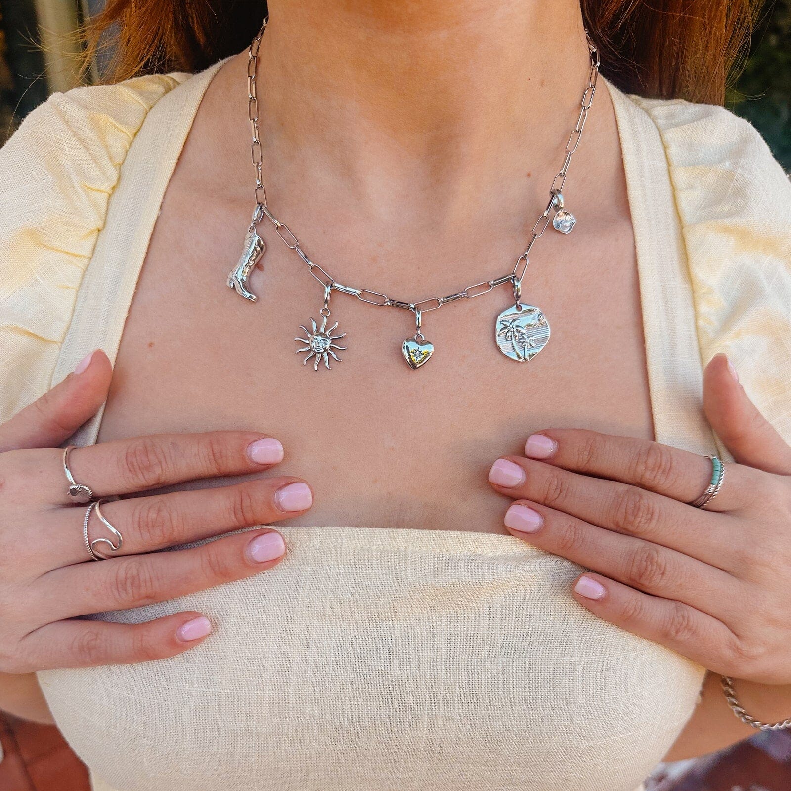 Dive into the spirit of summer with our Harper Beach Scene Charm! This charm captures sun-soaked days and ocean breezes. Available in both radiant silver and glimmering gold, it’s the perfect accessory for beach lovers and dreamers alike. Crafted from waterproof IP gold or silver-plated stainless steel, the Harper charm combines durability with an eye-catching aesthetic, ensuring it shines brightly through every adventure. Wear it solo for a charming statement or pair it with your favorite charms to create a customized beach-inspired look.