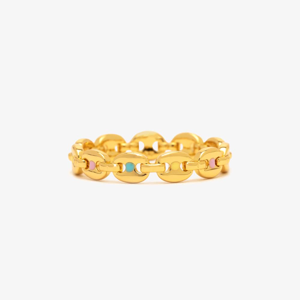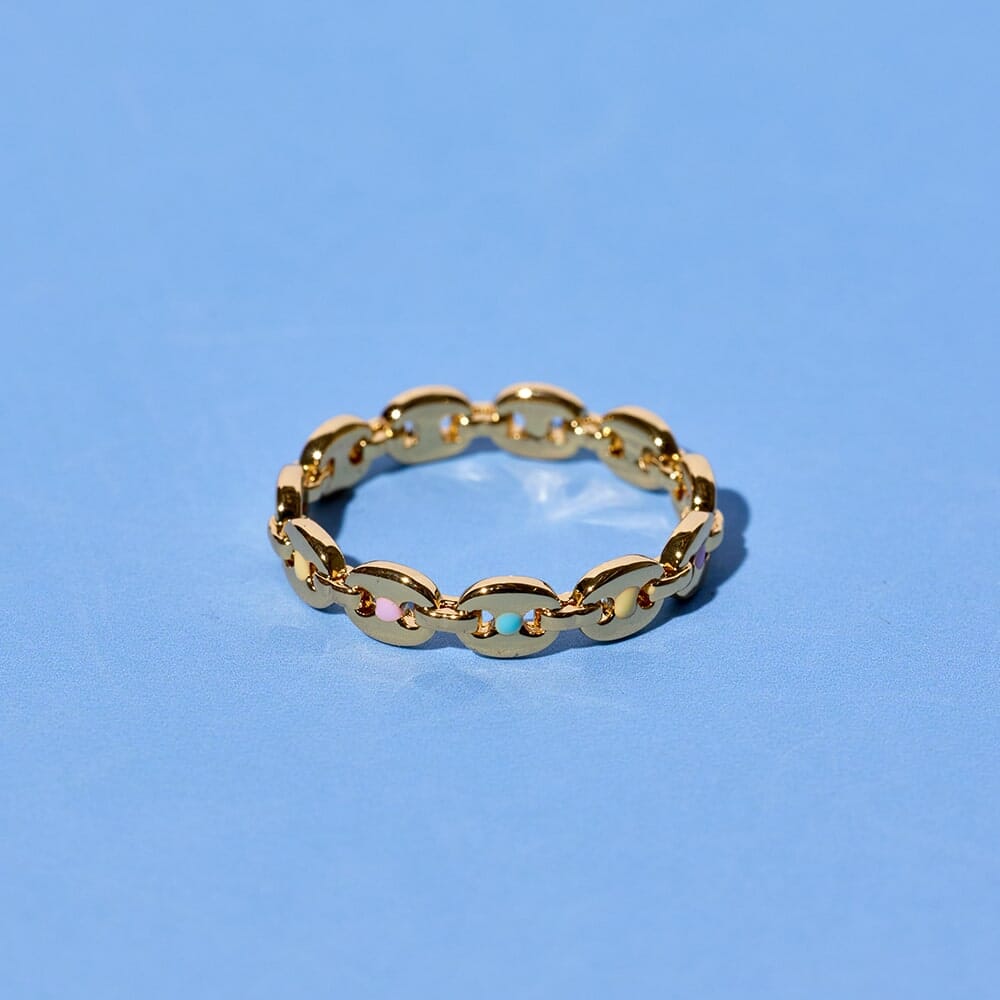 Make a statement with our Headliner Enamel Ring Stack. This set includes five bold rings, each crafted with a brass base, gold plating, and vibrant enamel accents. Designed to stack perfectly together, these rings give you the freedom to mix and match for a look that’s all your own. Plus, each ring is stamped with "pura vida" on the inside for that signature touch.