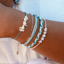 Introducing Spring Skies Bracelet, inspired by the soft hues of a clear spring day. Handcrafted with delicate shades of light blue and white, each piece embodies a sense of tranquility and freshness. Waterproof and meticulously made, reminiscent of endless blue skies. Embrace the Pura Vida vibes by securing yours today and let your style soar with the lightness of springtime.